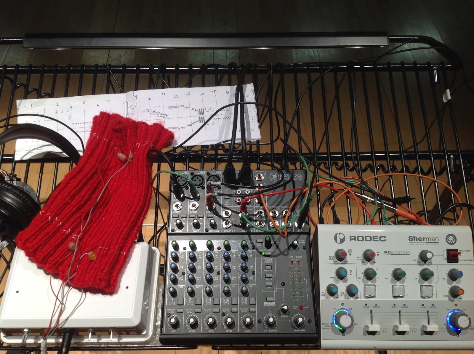 Knitted sensors and textile controllers that bend, stretch and twist the acoustic room as they conjure up strange new sound worlds – should be fascinating!